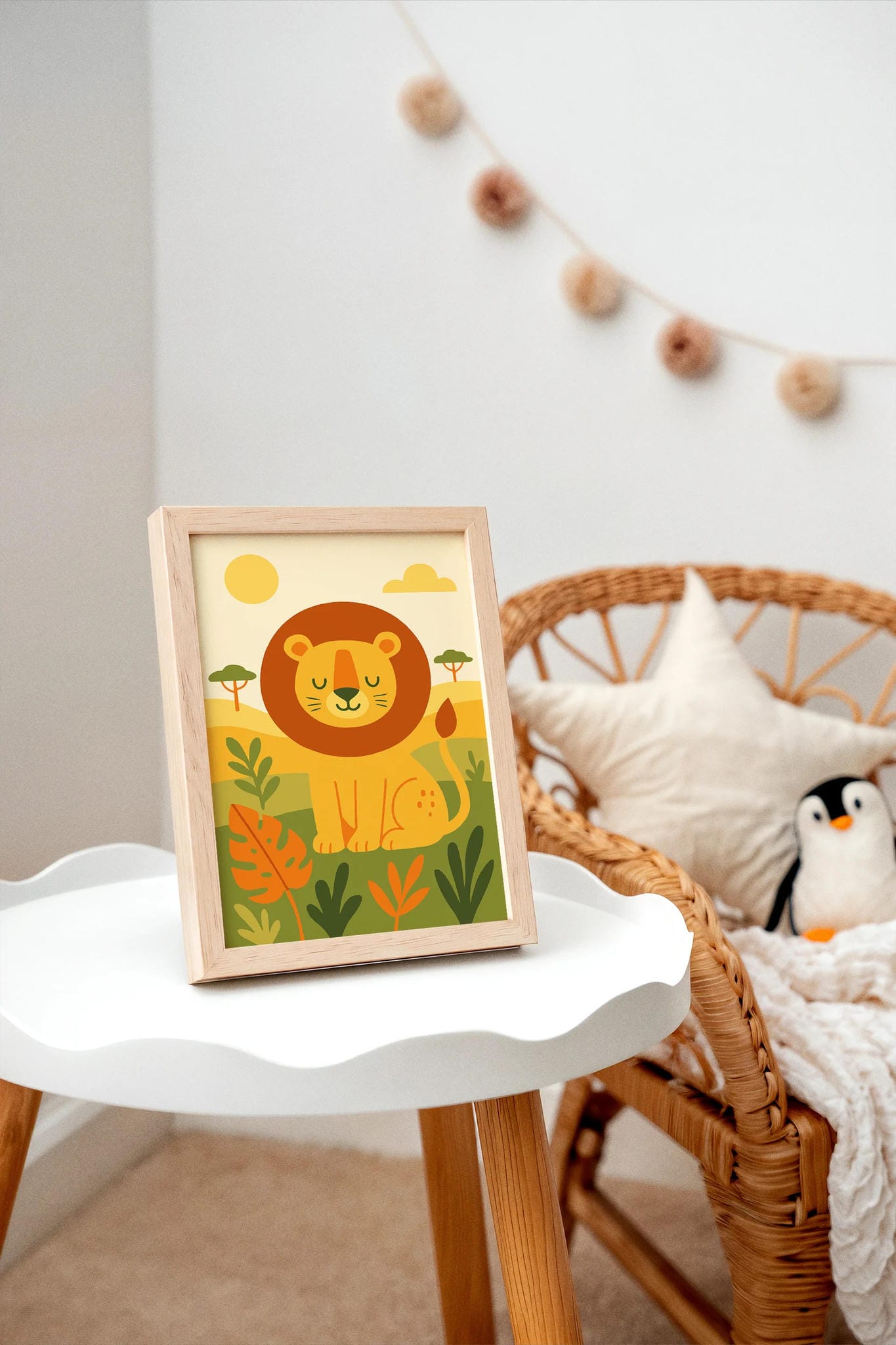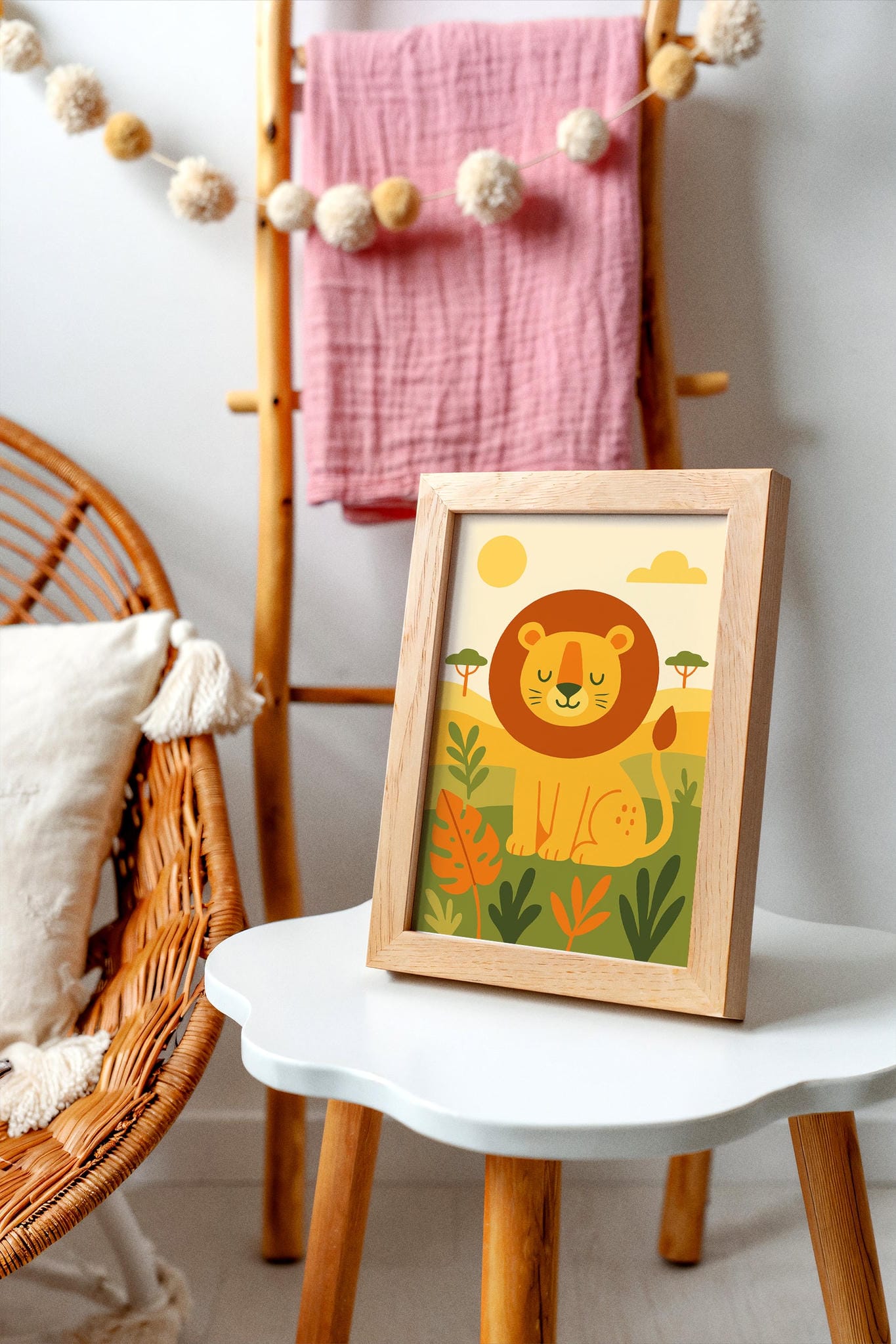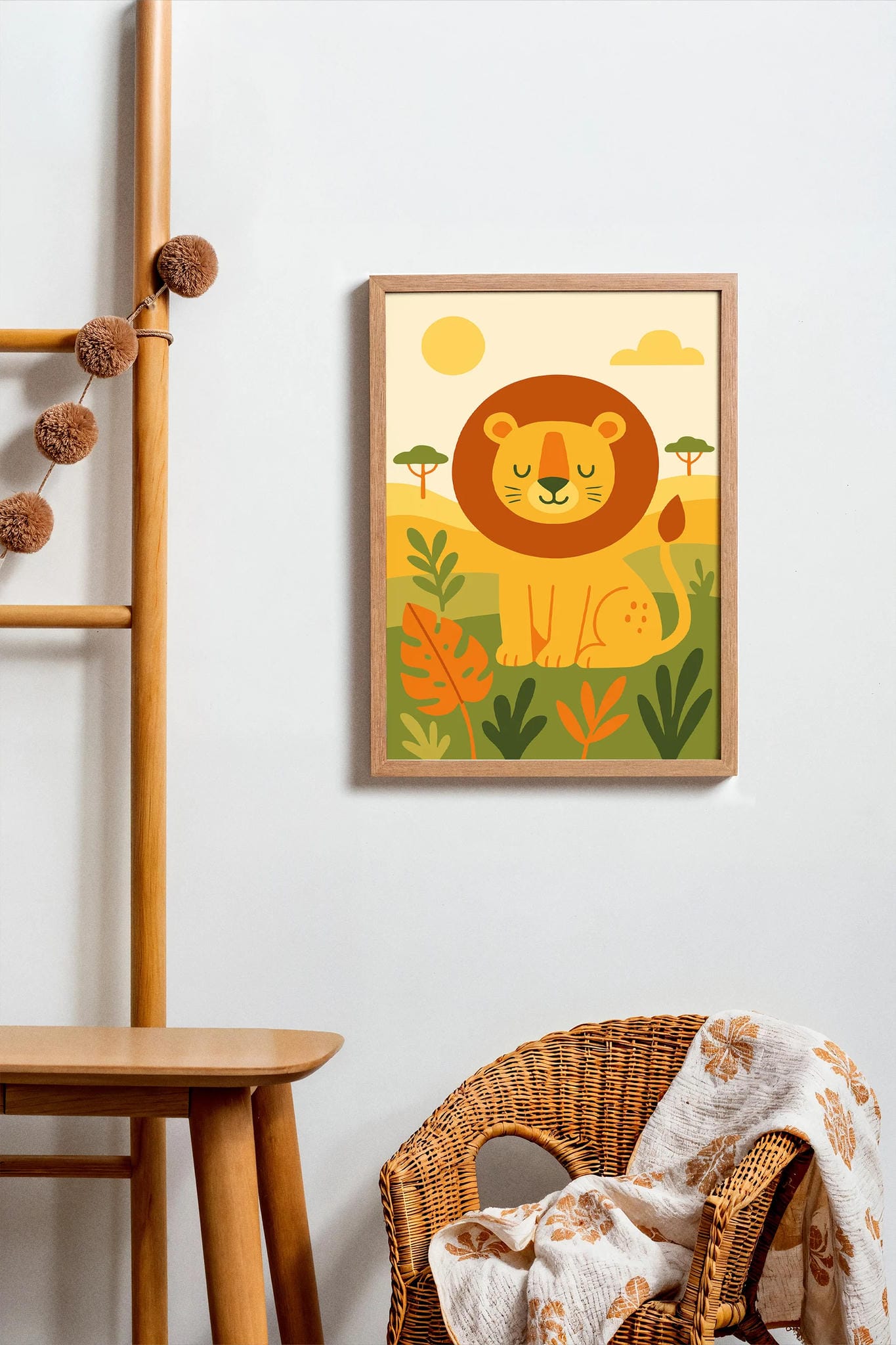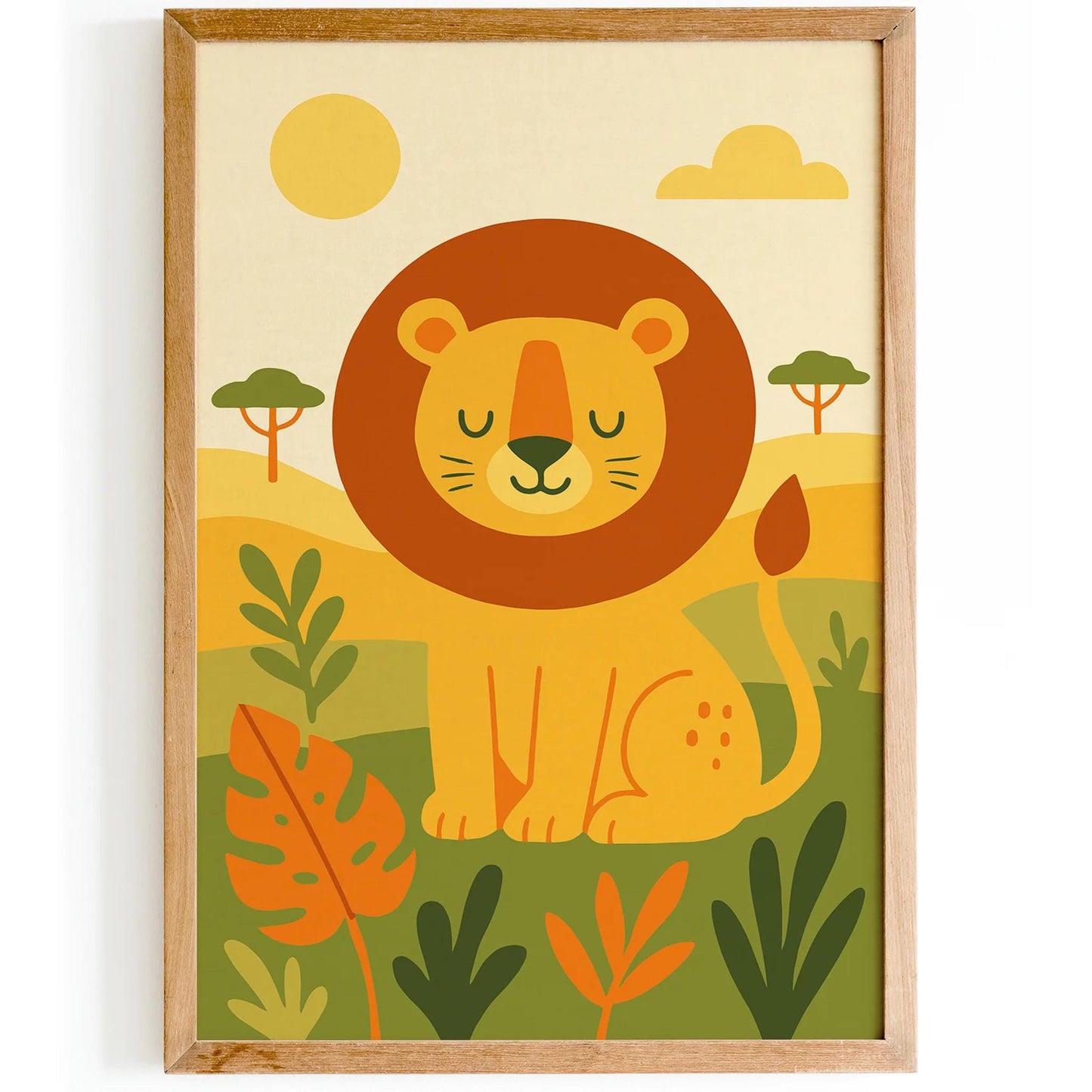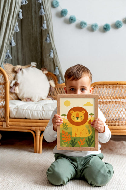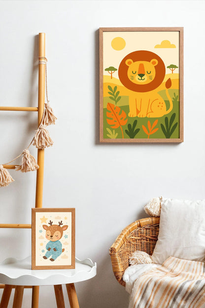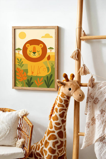 Sweet and charming safari lion wall art, ideal for nursery or kids’ room decor to create a warm, adventurous atmosphere.