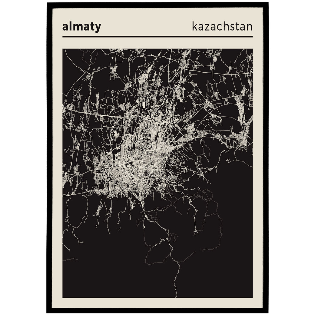 Almaty Kazakhstan Map Poster