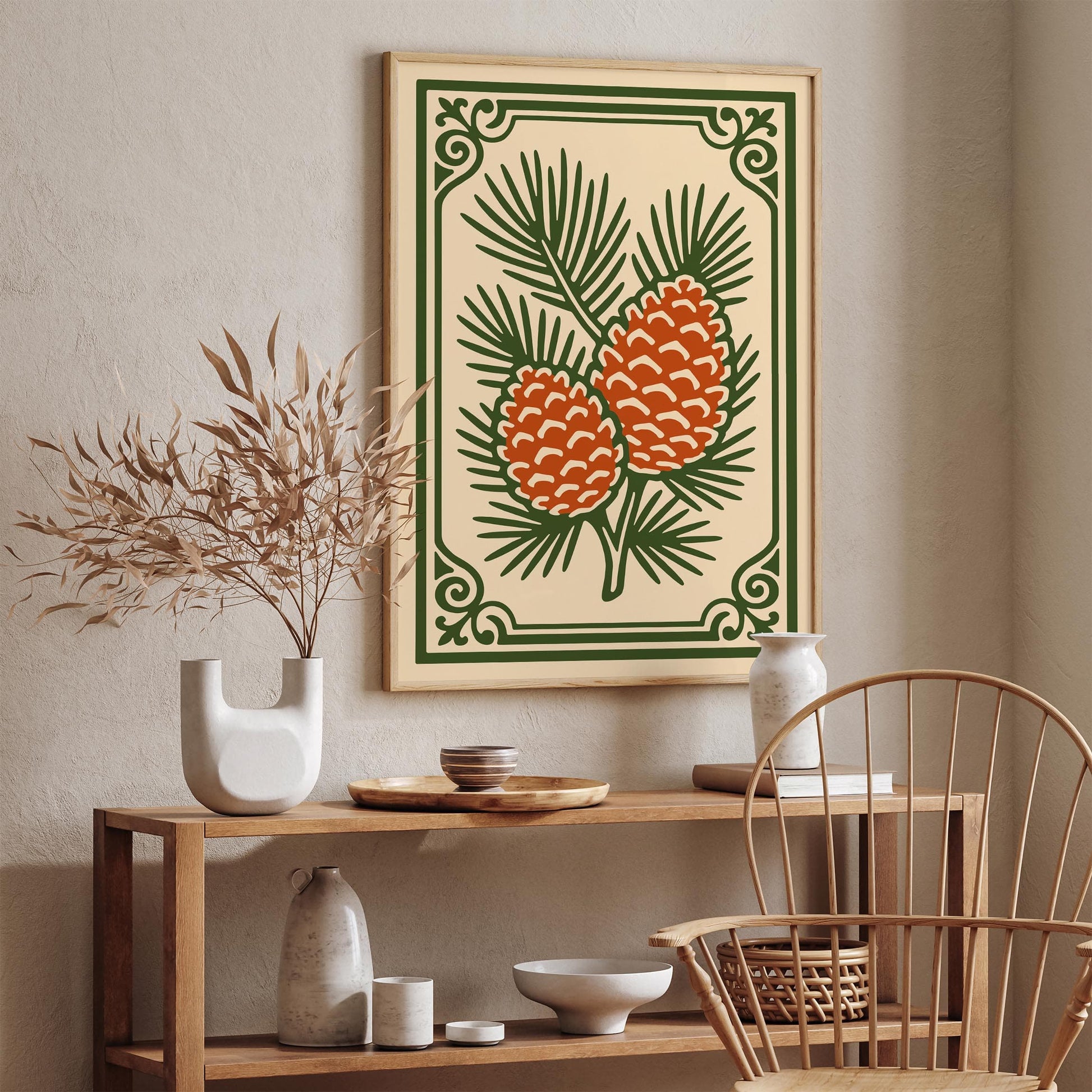 Autumn Cones Art Print - Fall Cozy Home Decor