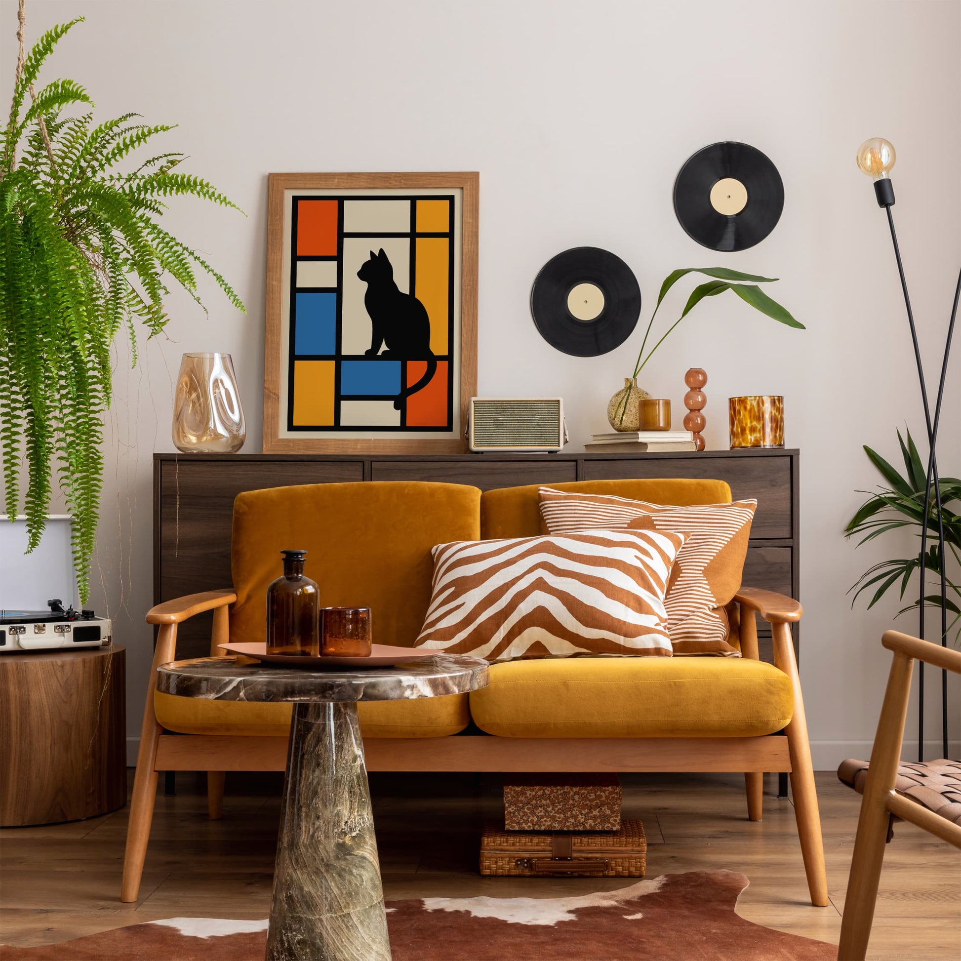 Bauhaus Cat Print Geometric Mondrian Art Print