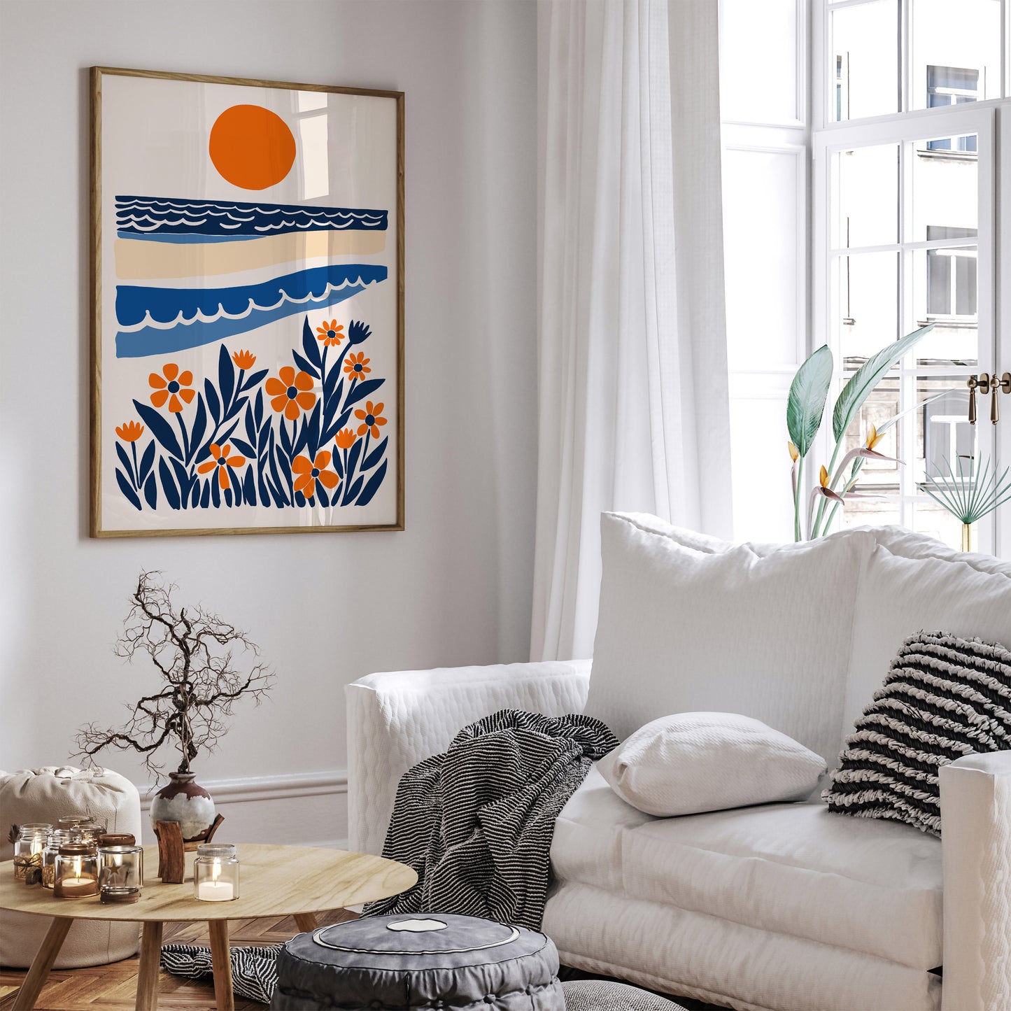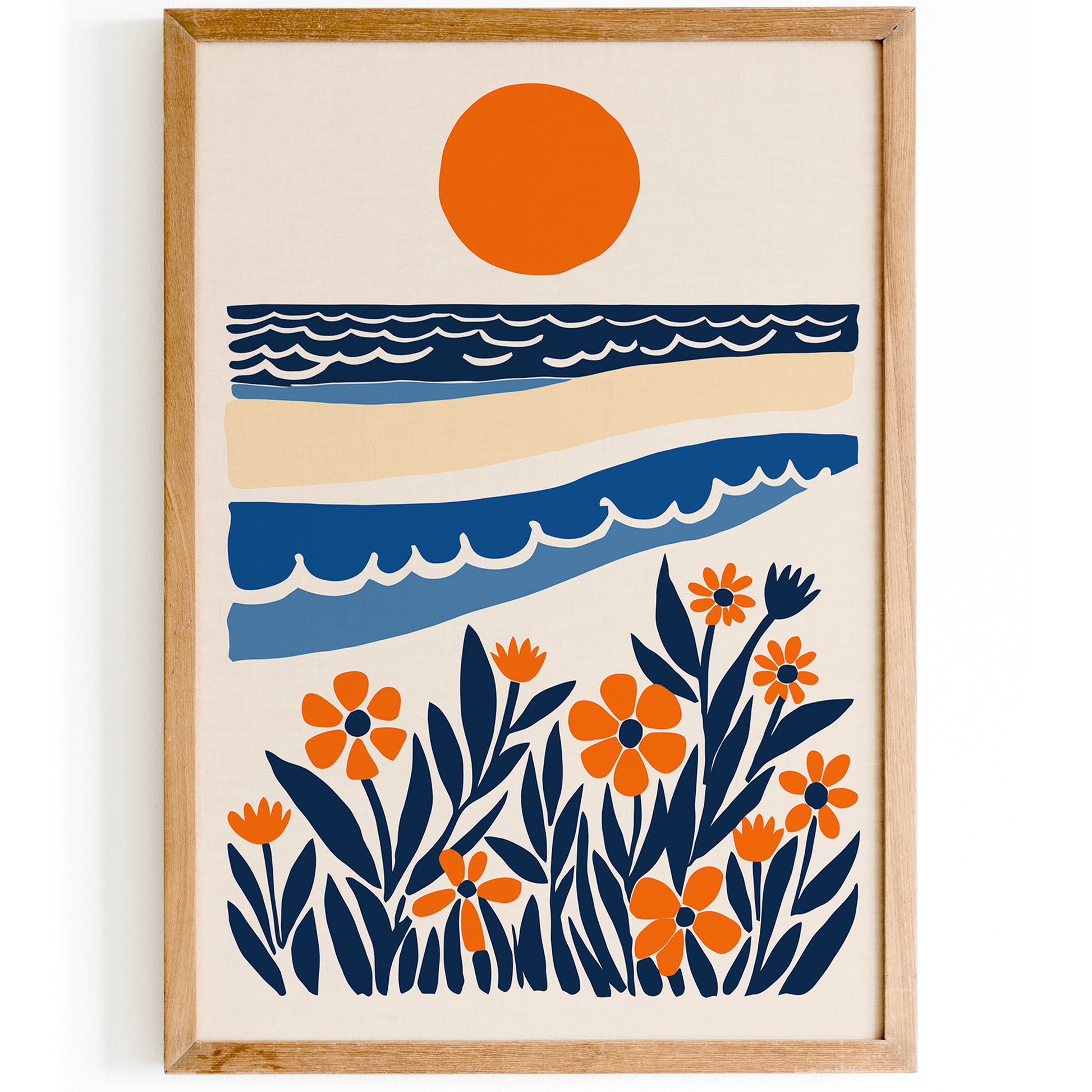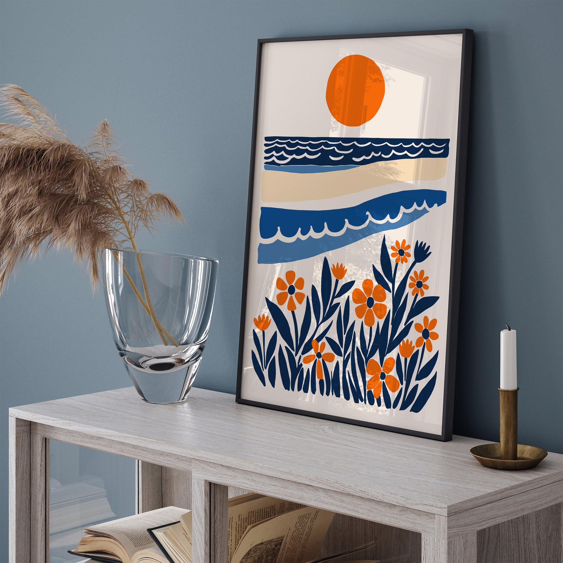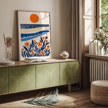Blue and Orange Nautical Landscape Print