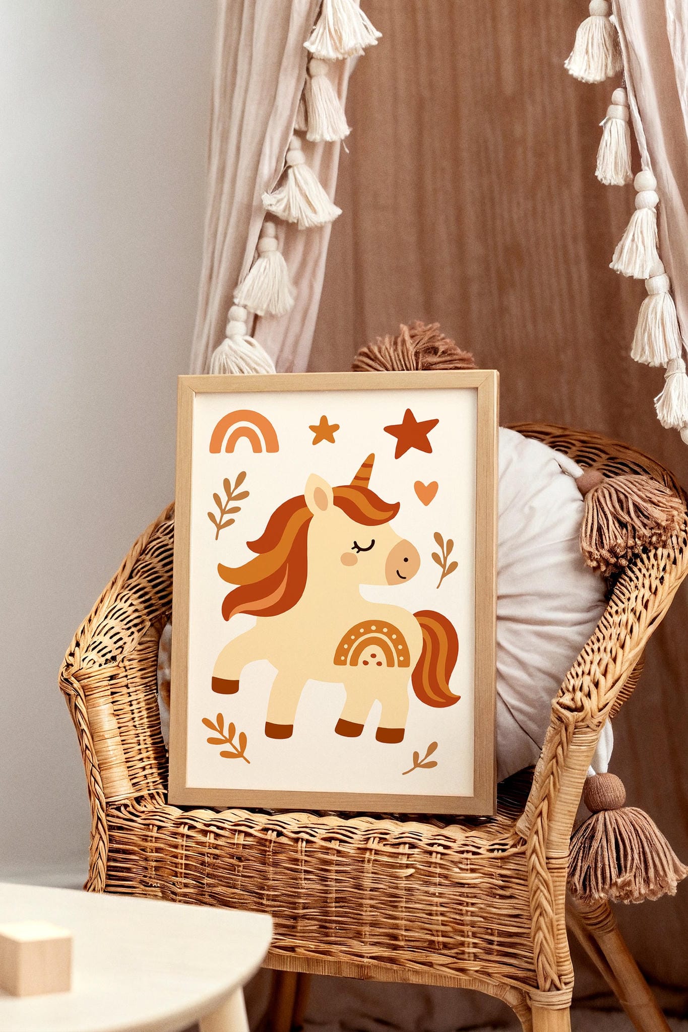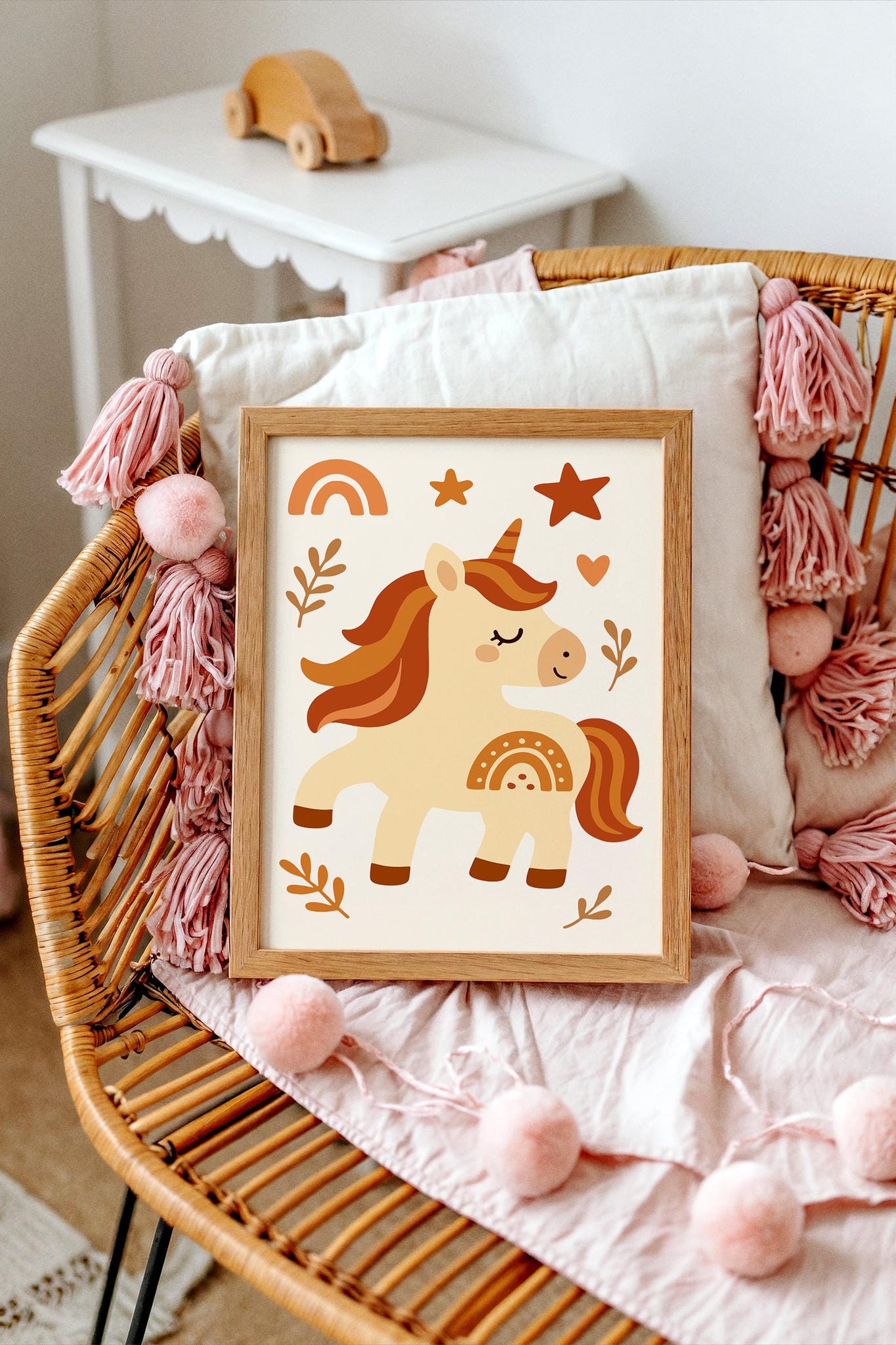 Magical and sweet, this Boho Unicorn Wall Art adds a soft, whimsical touch to any pastel-themed nursery or kids' room.