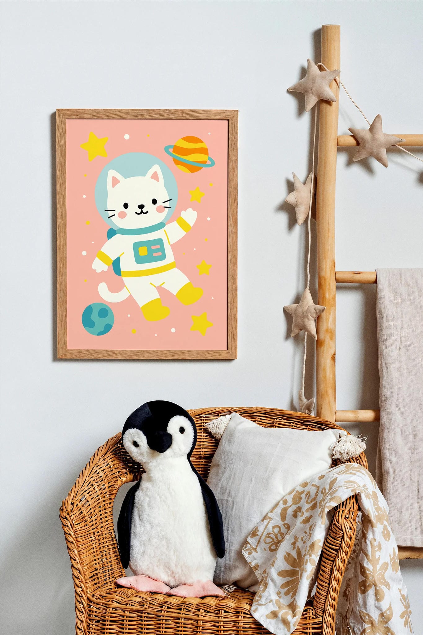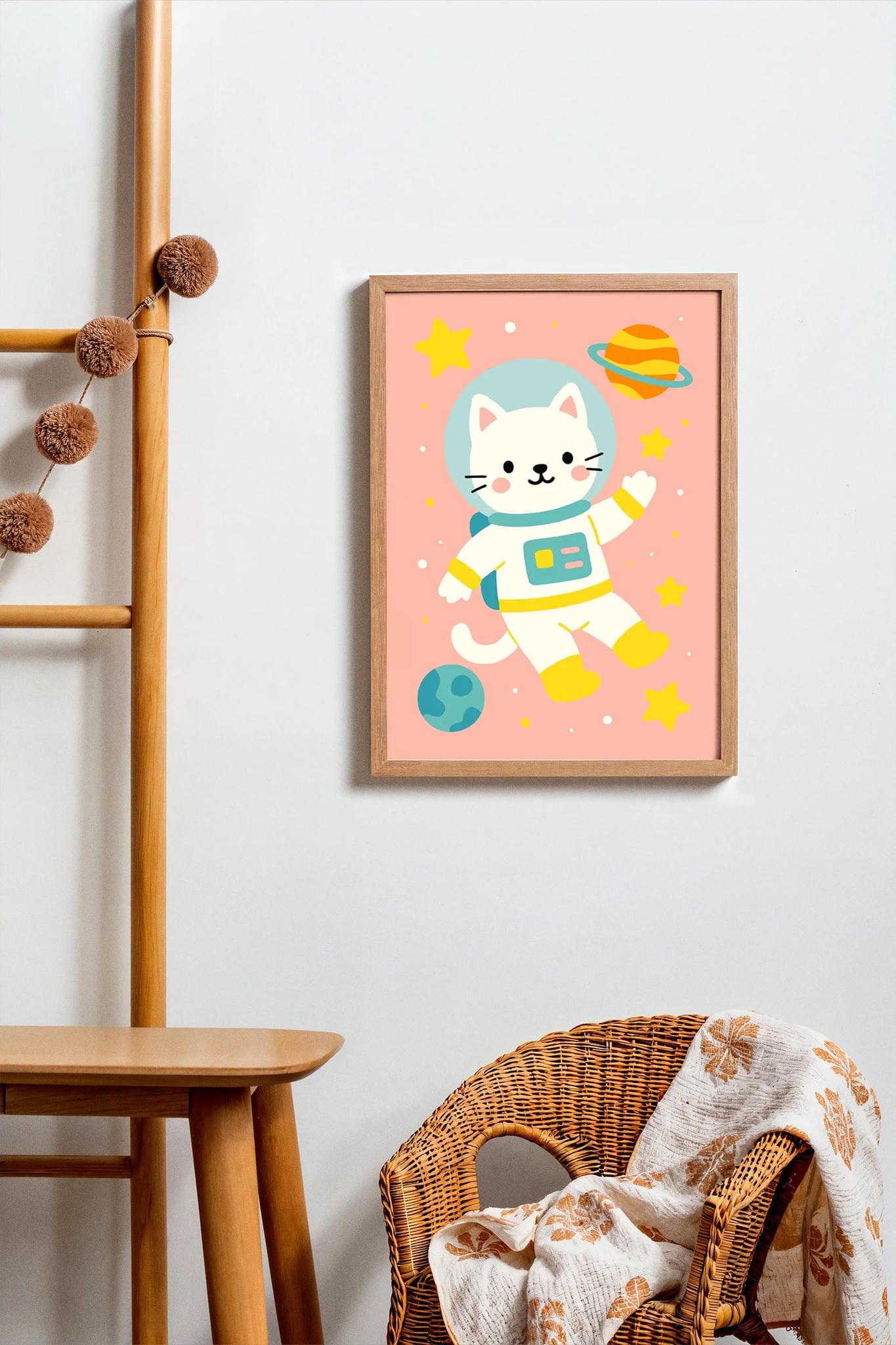 This playful space kitty is ready for takeoff! A fun and imaginative print that’s perfect for little explorers and future astronauts.