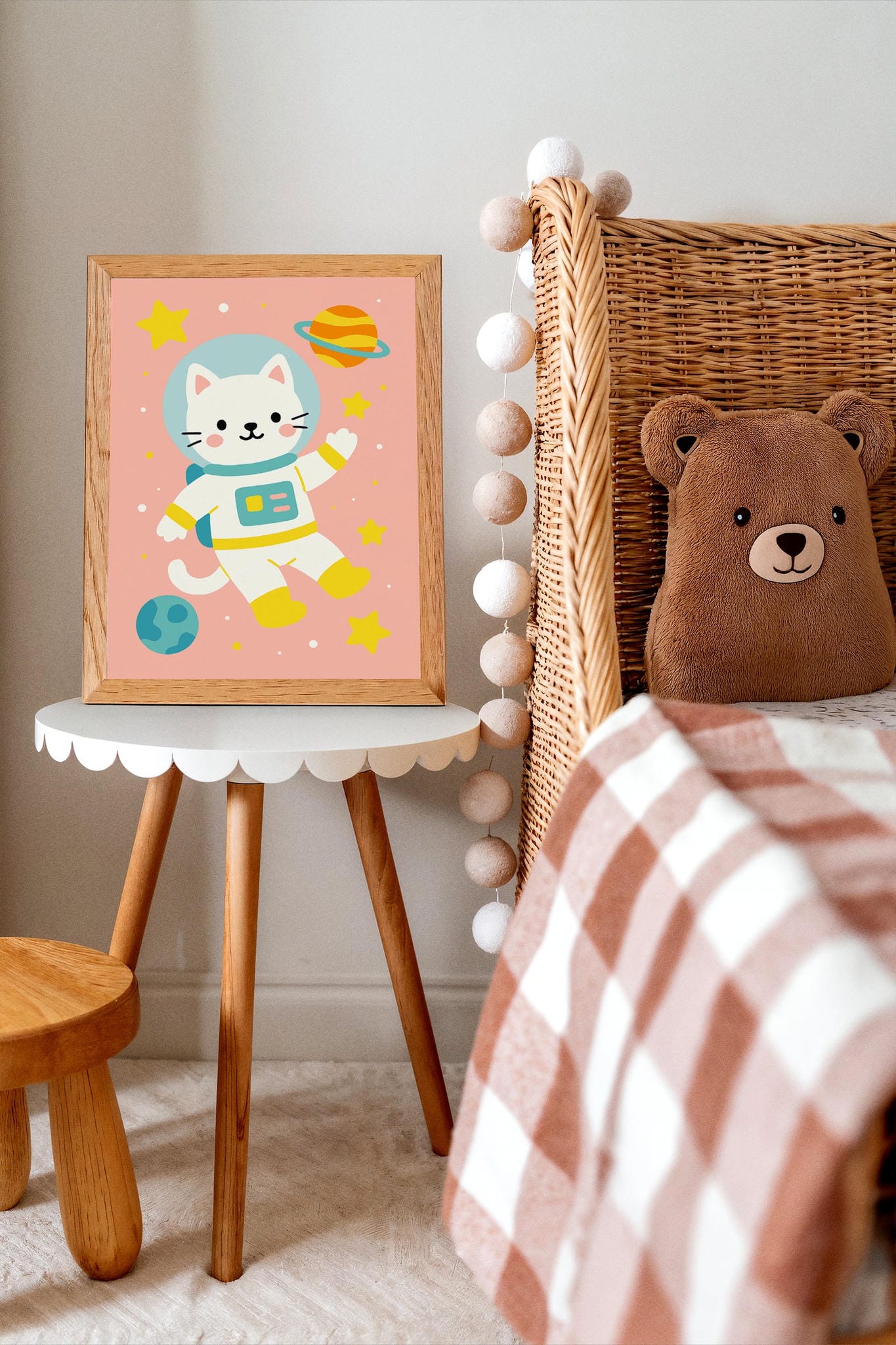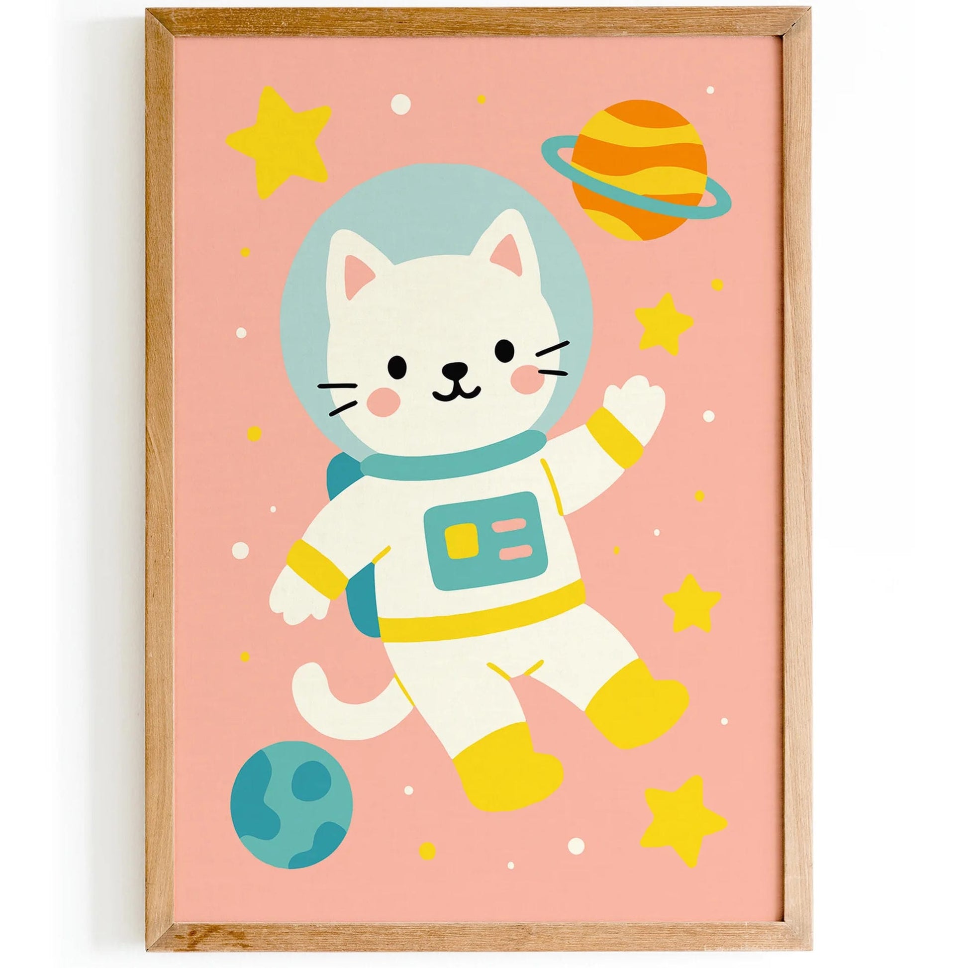 Cute Cat Astronaut Art Print – Kids Space Decor