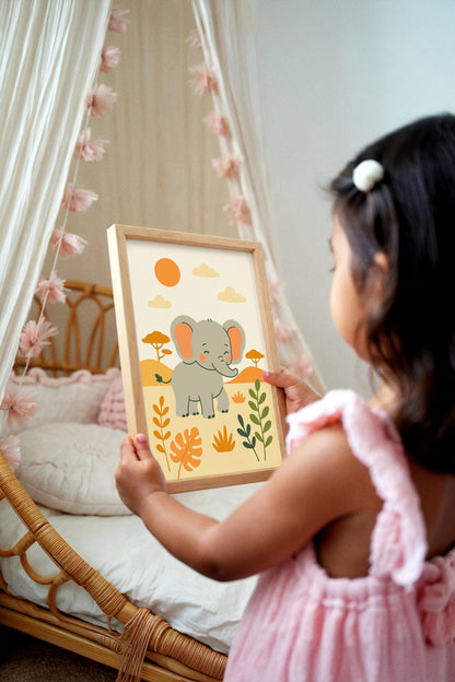 Adorable and calming, this Cute Elephant Poster is the perfect safari-themed touch for any nursery or kids' room.