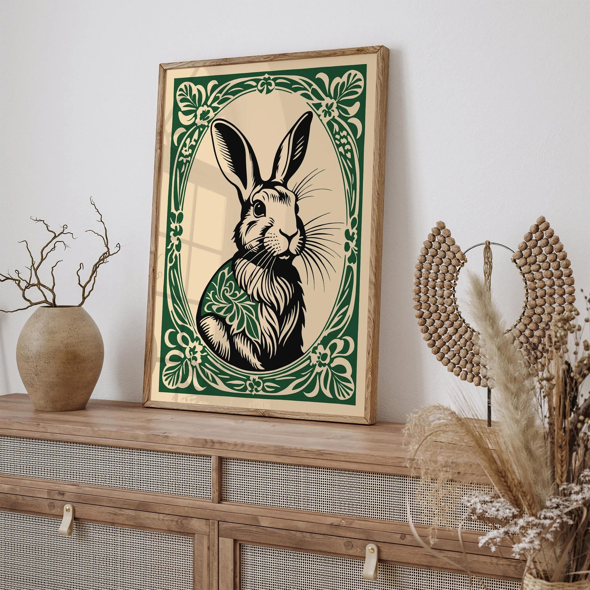 Cute Rabbit in Rococo Floral Frame Art Print