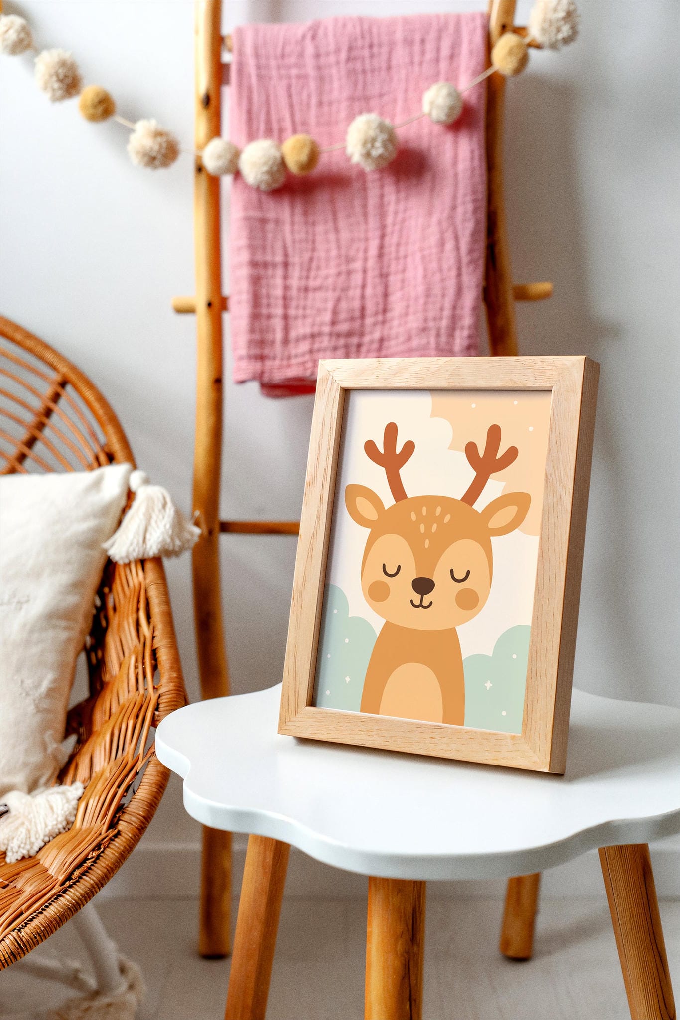 Cute Sleepy Deer Art Print – Nursery Wall Decor