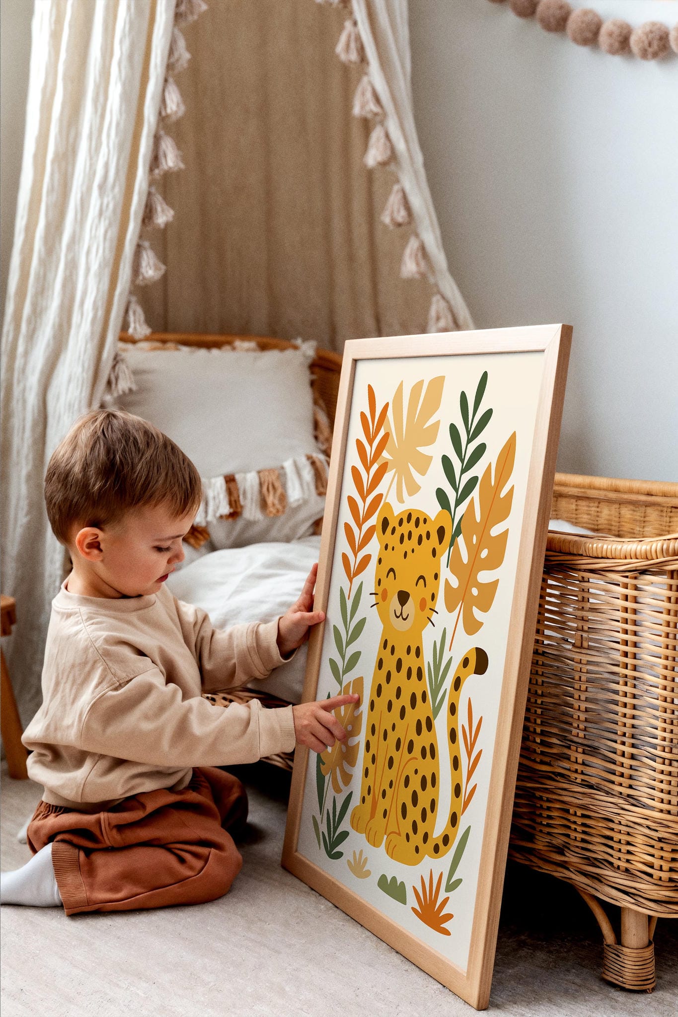 Add a playful vibe to your child’s room with this Friendly Cheetah Wall Art—full of charm, smiles, and wild personality!