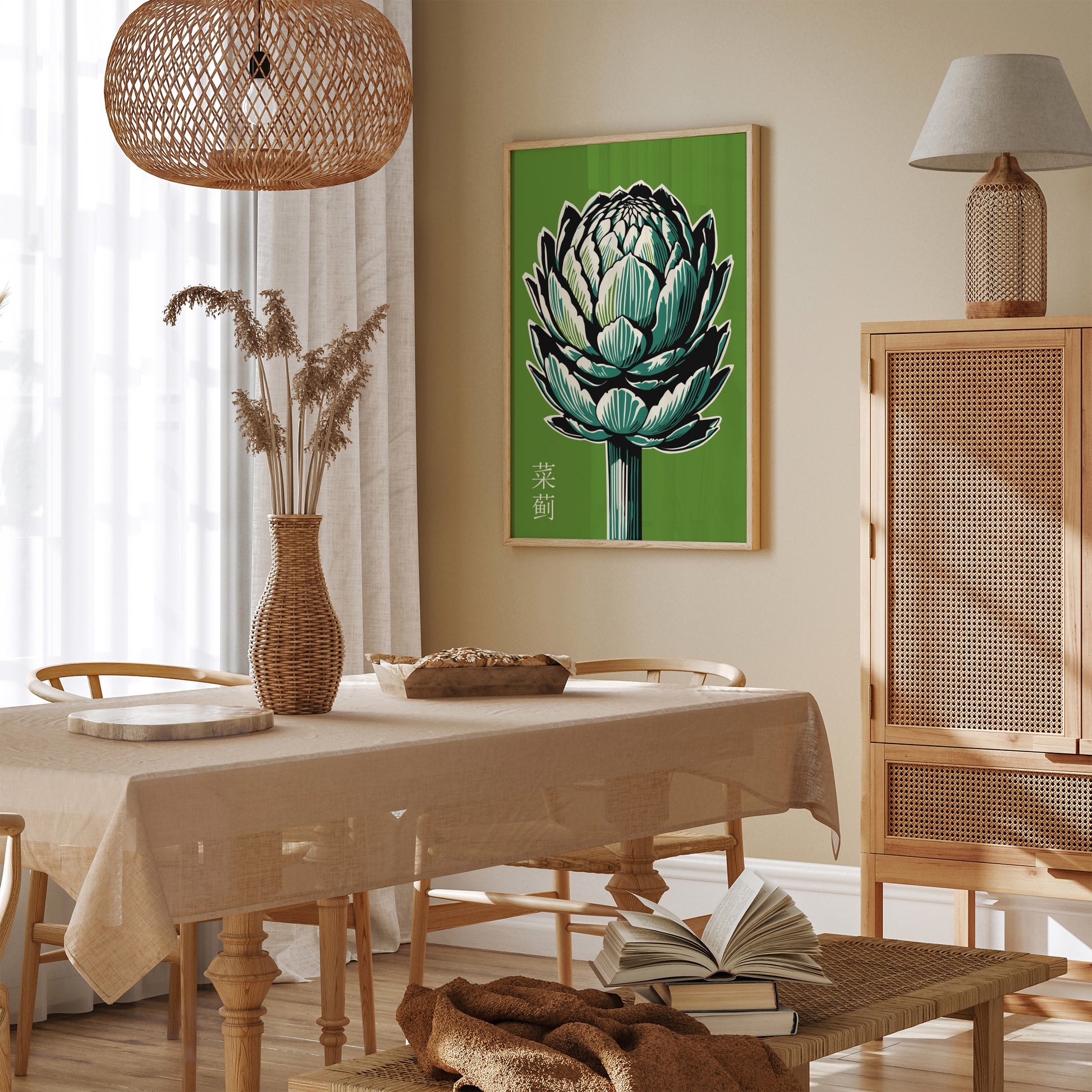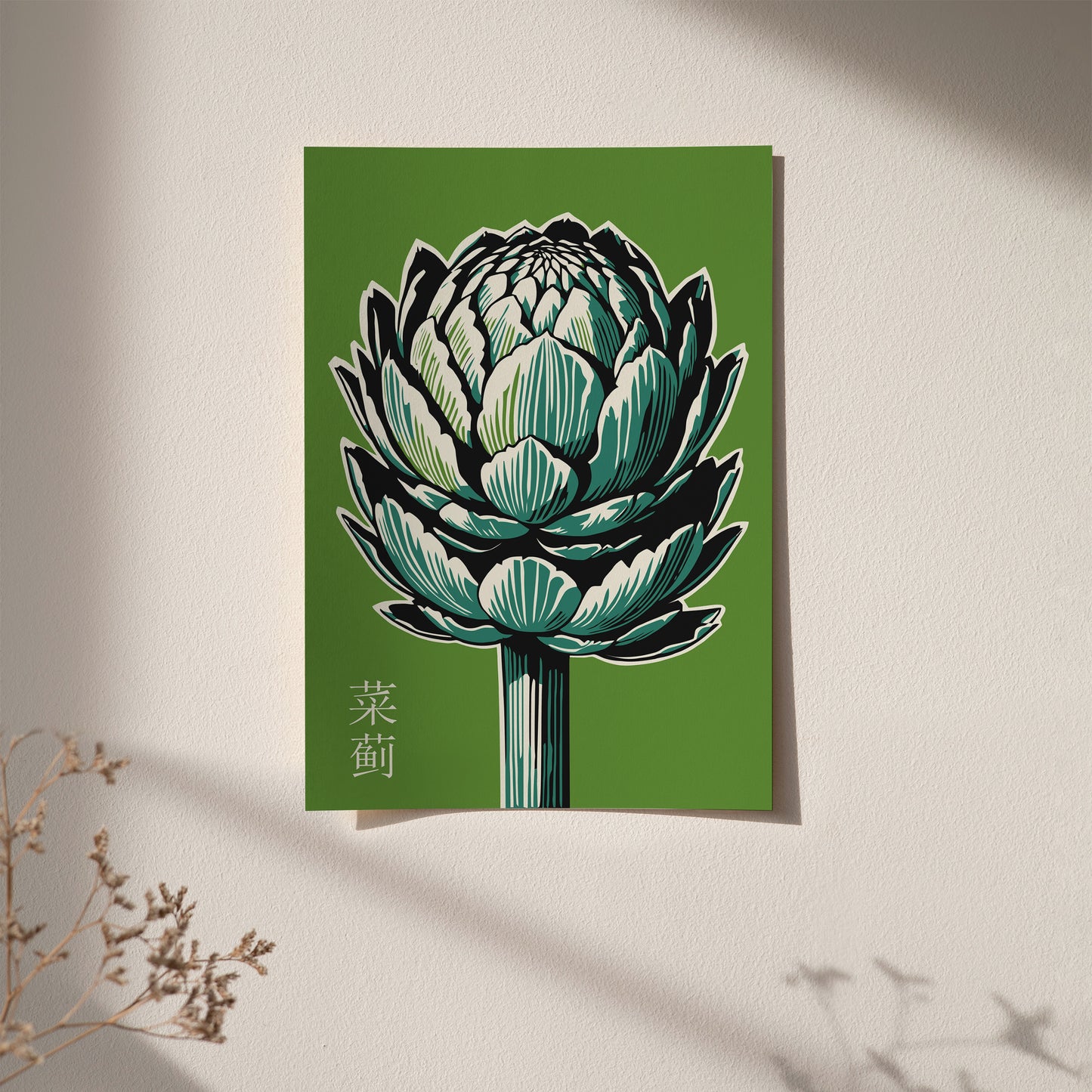 Green Artichoke Minimalist Japanese Print