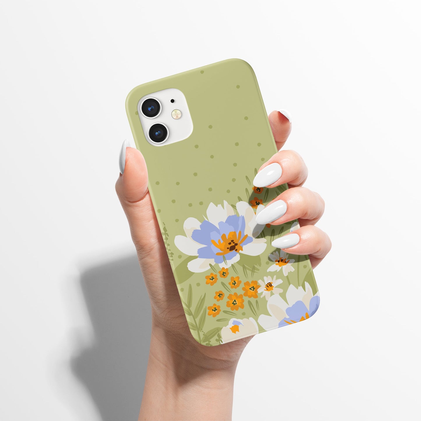 Green Handdrawn Meadow with Flowers iPhone Case