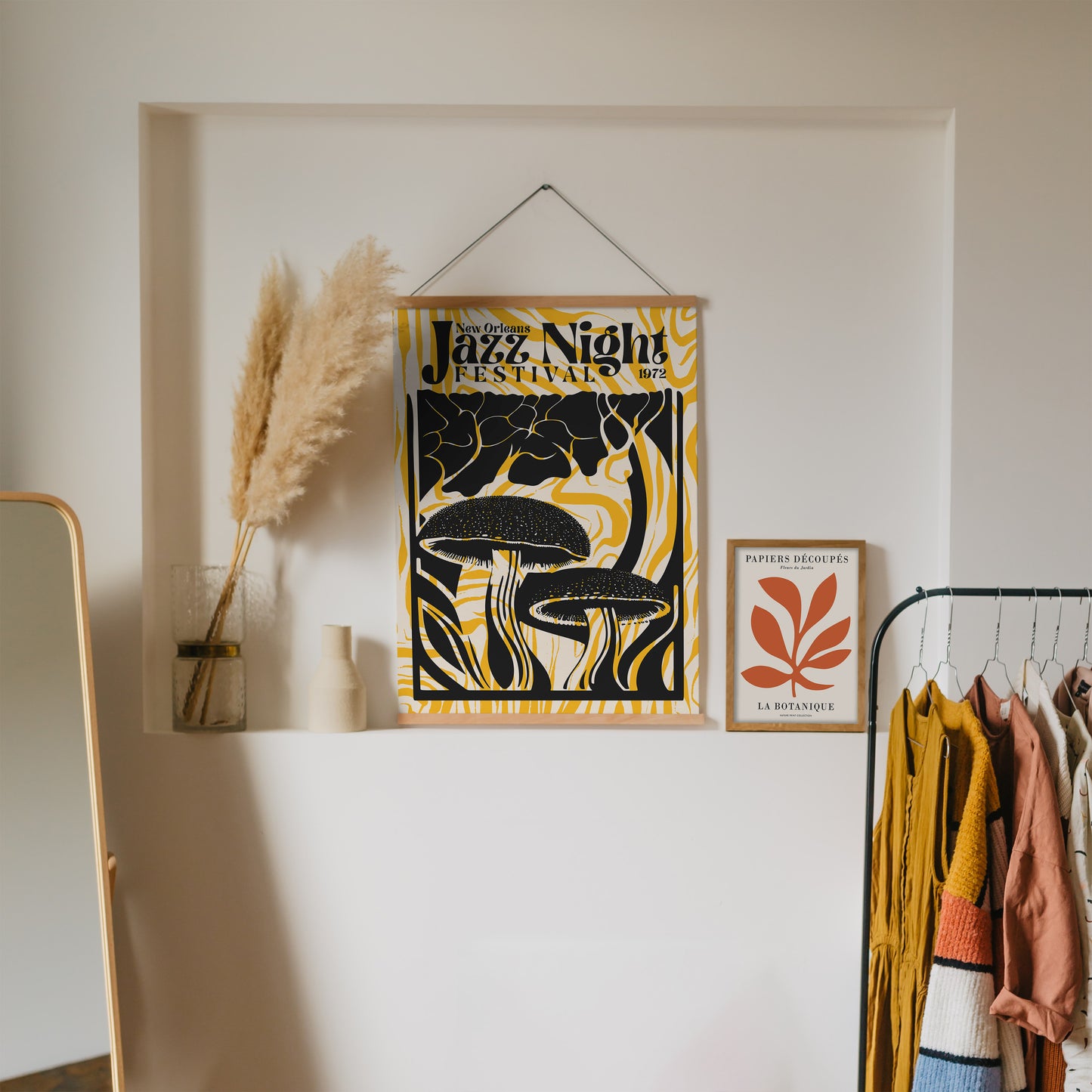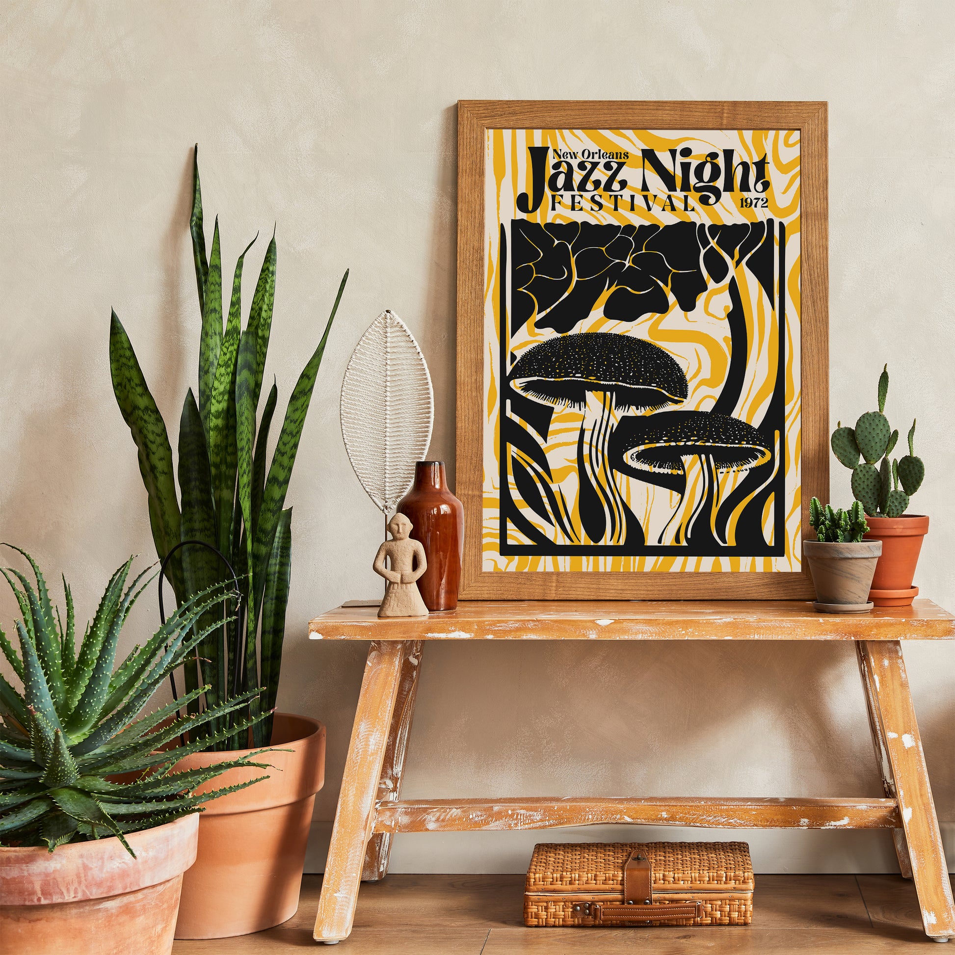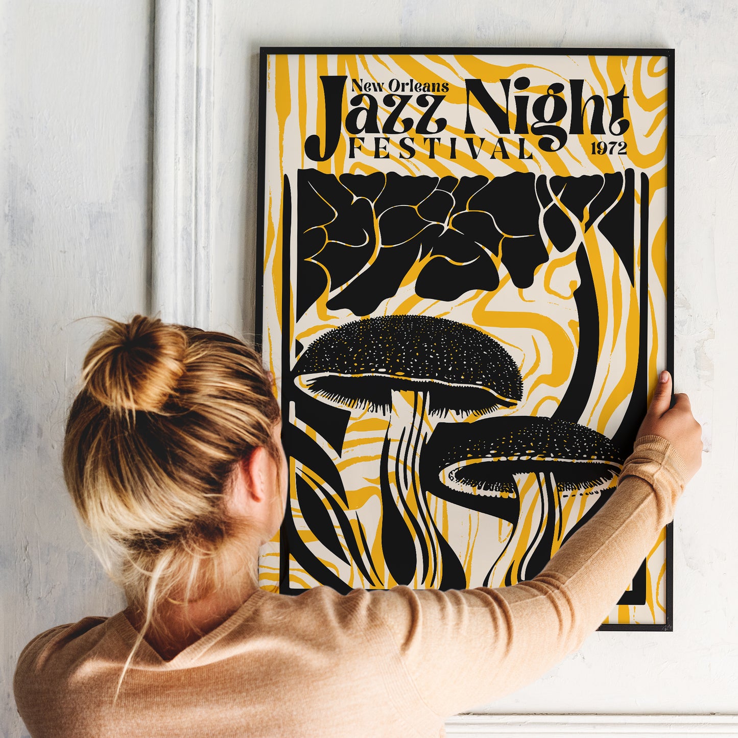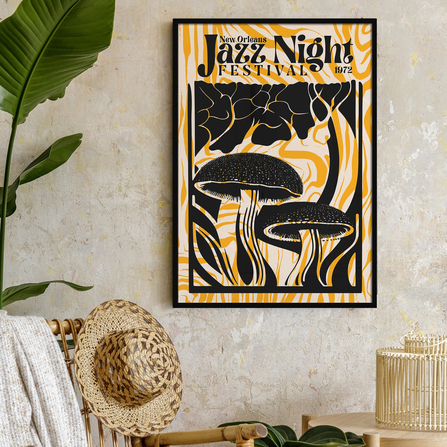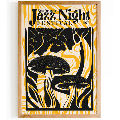 Groovy Jazz Night Mushroom Yellow Music Poster