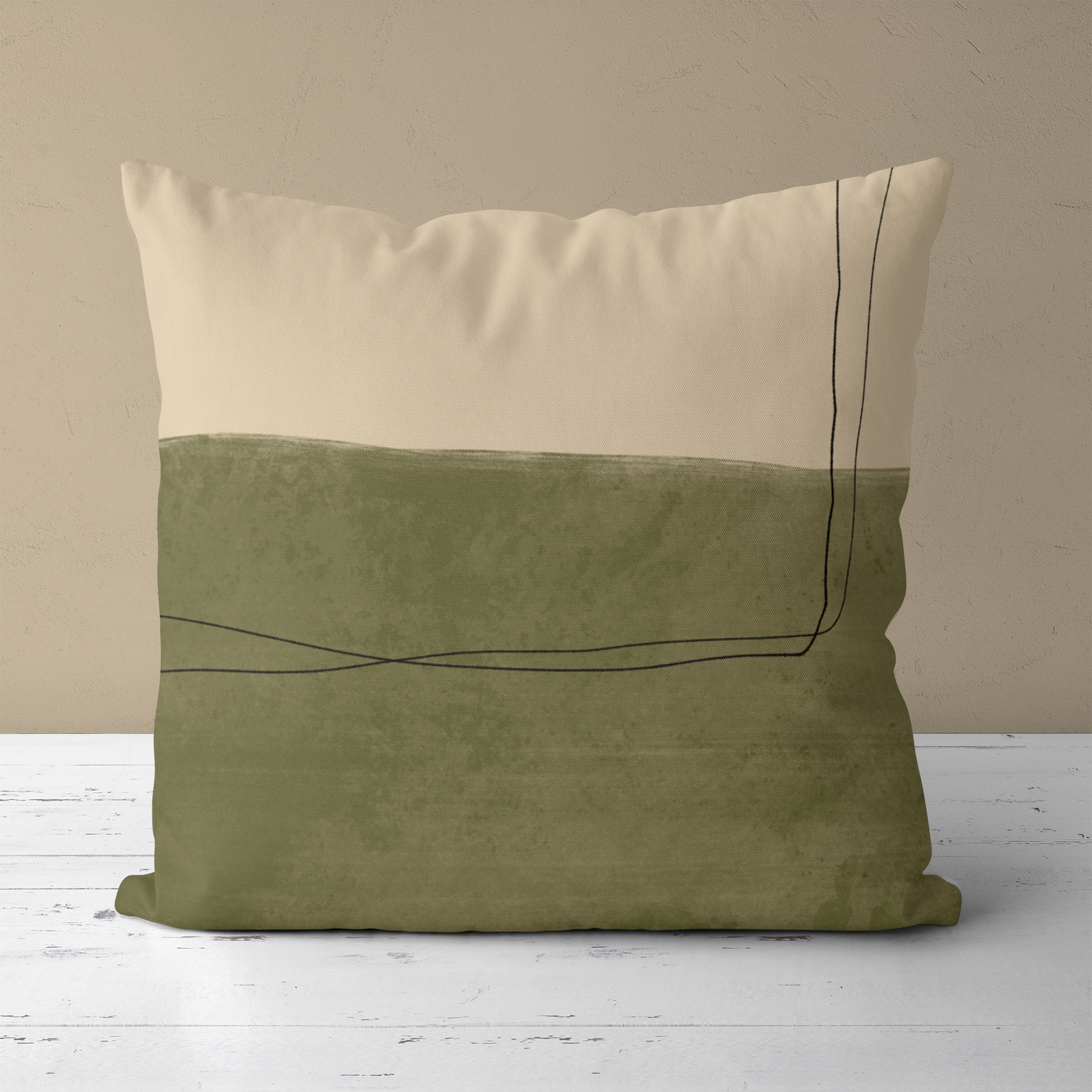 Japandi Style Green Minimalist Throw Pillow