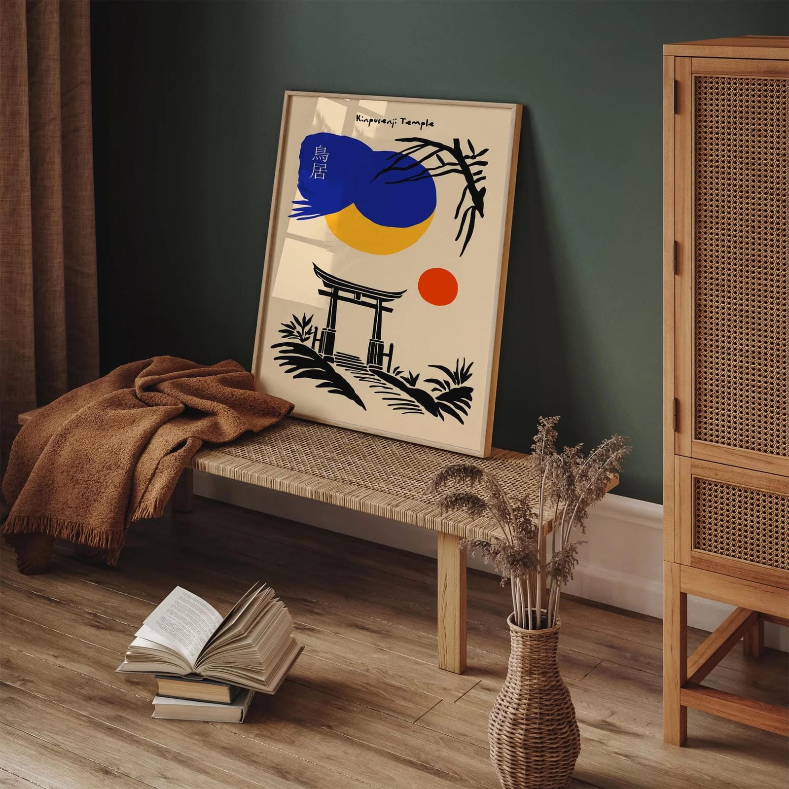 Kinpusenji Temple Nara Japan travel poster with torii gate design.