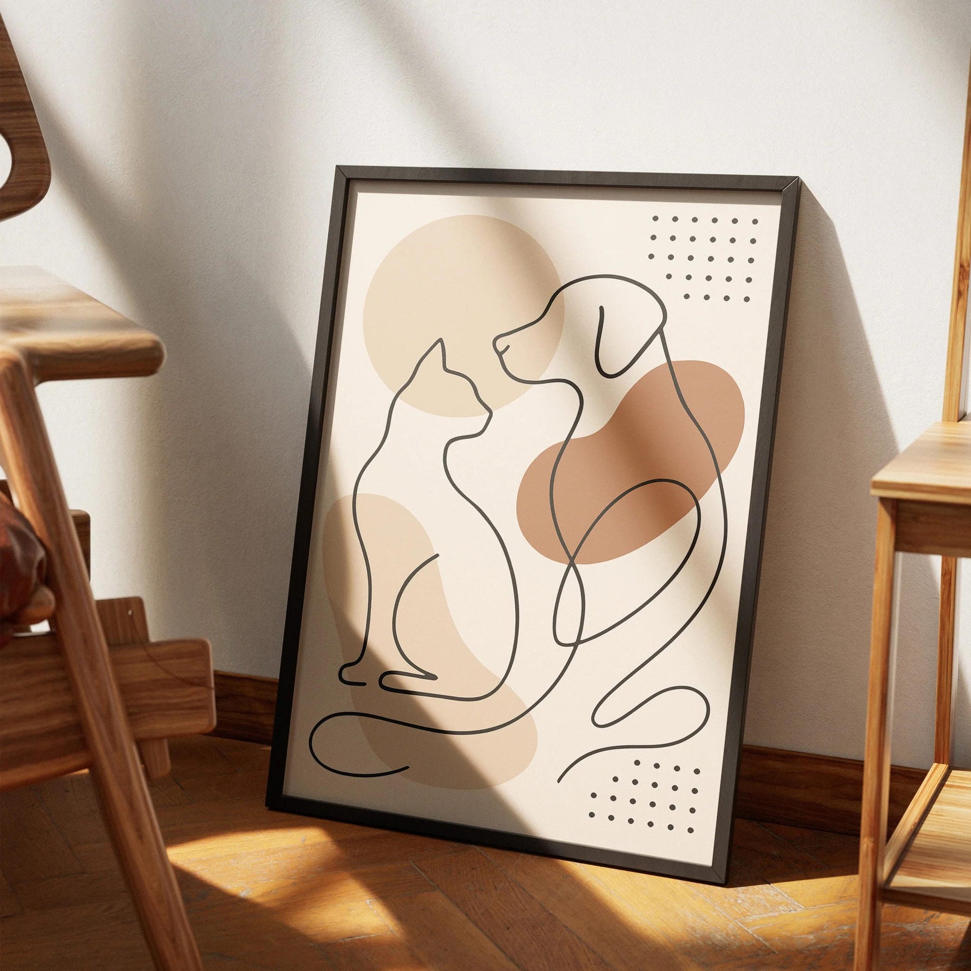 Pet Line Art Print – Cat and Dog Friendship Wall Decor