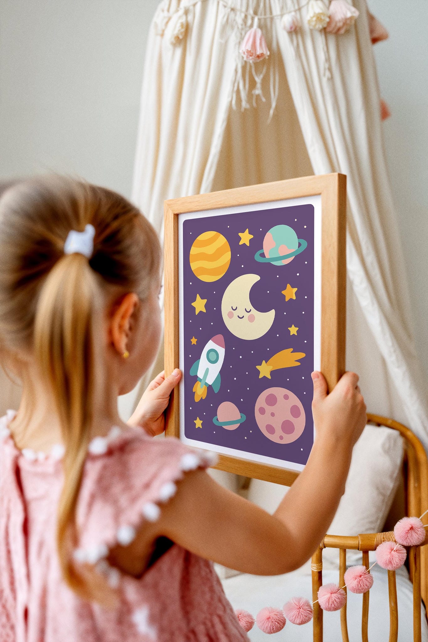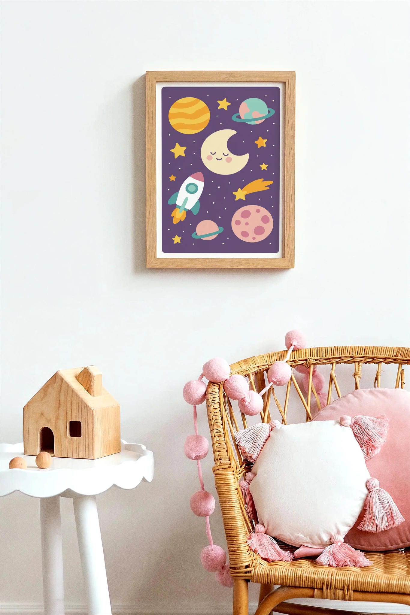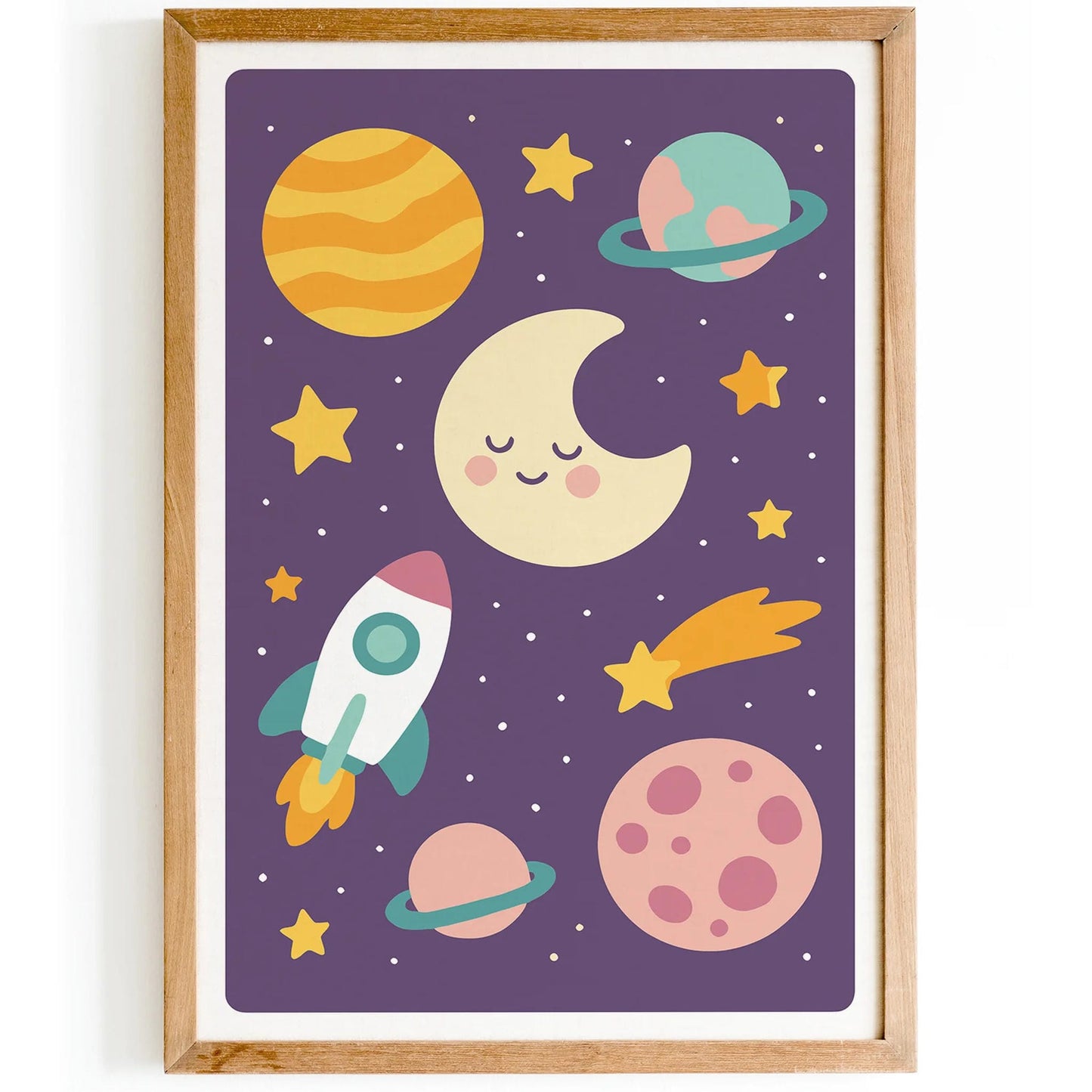 Add a touch of wonder to your child's room with this charming purple cosmos print. Perfect for space-loving kids and dreamy nurseries.