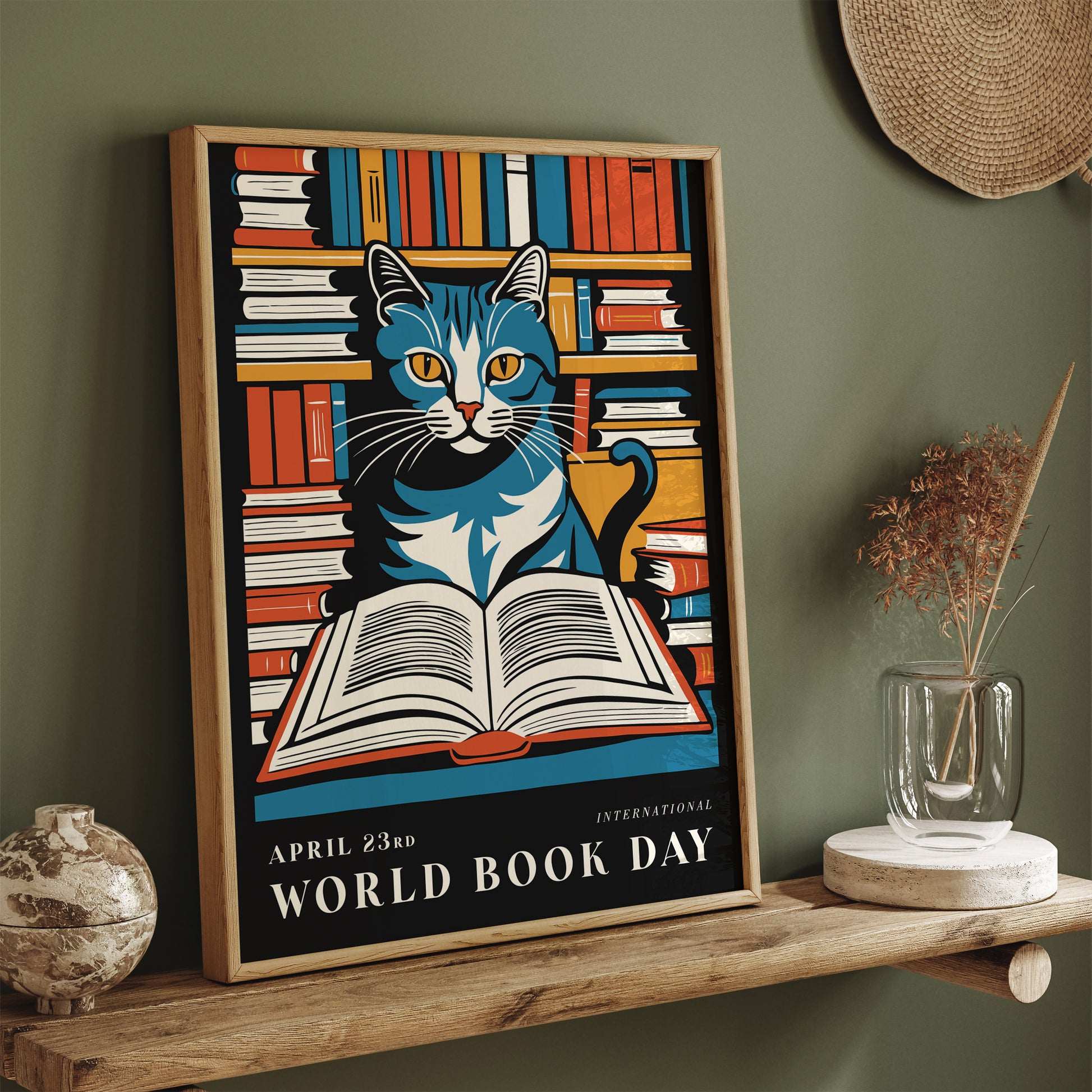 Reading Cat Book Day Poster